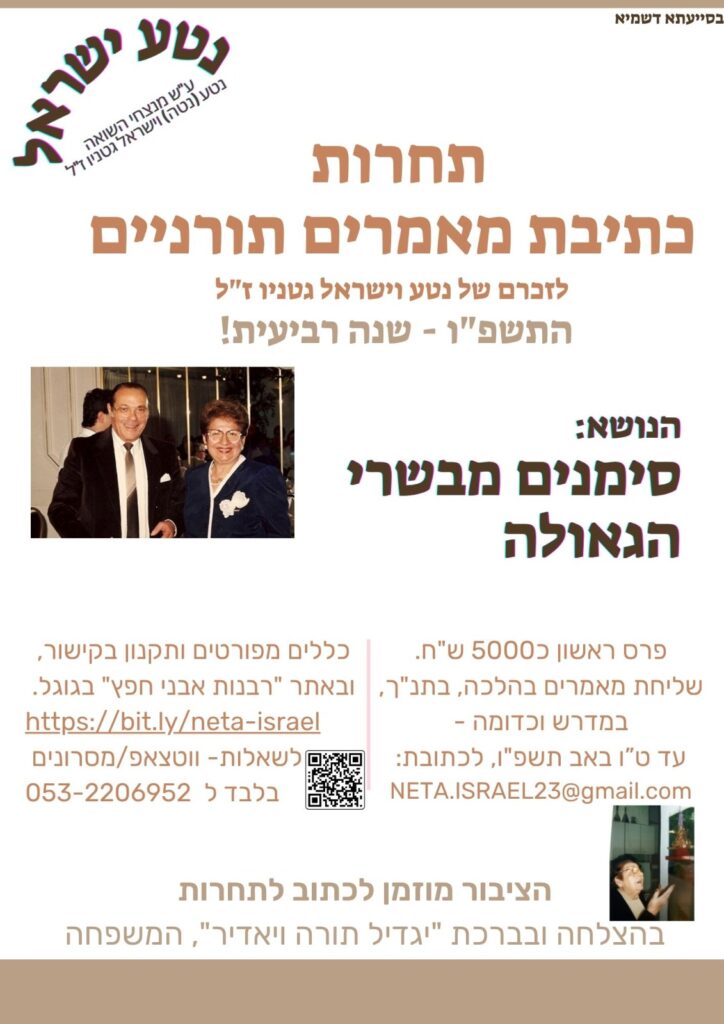 יוצא לאור מדי חודש עם דברי תורה, שאלות מרחבי הארץ, עדכונים לגבי שיעורים ועוד. להצטרפות לקבלת הירחון למייל: